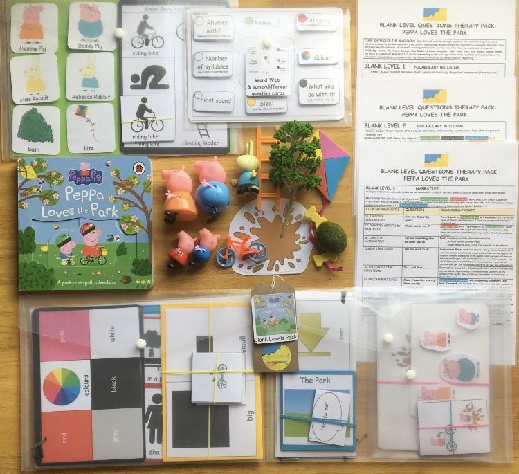 PEPPA LOVES THE PARK BLANK LEVELS 1-3 THERAPY PACK “This resource kit is amazing and has everything you could need for your language goals. Everything is great quality and well planned out for you to use straight away. I can’t wait to use it with my clients.”