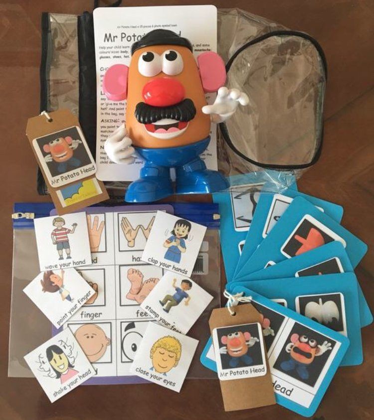 This toy is perfect for helping children use and understand words for parts of the body and some clothes. They can practise asking for ‘eyes’ or ‘shoes’ using Picture Exchange before they have any words, and this will help them tune into those words.